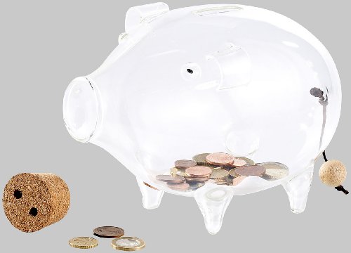 Edles Deko-Objekt aus echtem Glas: Haben Sie Ihr Erspartes immer im Blick! So macht Geldsparen noch mehr Spaß : Mit dem dekorativen Sparschwein aus Glas behalten Sie immer den Überblick über Ihr Erspartes. Das klassische Sparschwein erscheint dabei in ungewohnt coolem Look ! Das Besondere : Vorne befindet sich eine großzügige Öffnung, die mit einem Korken in Form einer Schweinchen-Nase verschlossen wird. So können Sie Ihr Sparschwein plündern, ohne dass Sie gleich den Hammer schwingen müssen.Zum Schutz befindet sich im Inneren eine kleine Silikon-Matte , die geräuschhemmend ist und das Glas vor Kratzern und Schäden bewahrt.Der Statt-Preis EUR 24,90 ist ehem. empf. VK des Lieferanten.