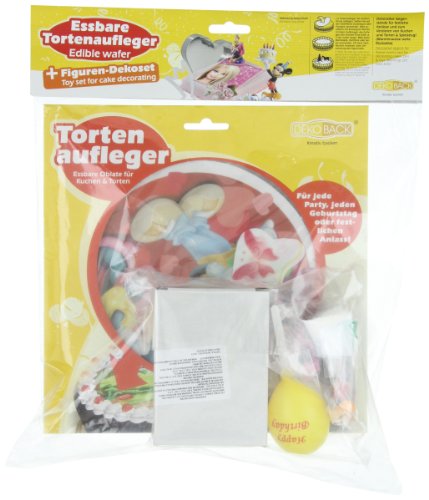 - Das Set besteht aus: 2 Mickey Mouse Figuren, 5 kleine Herzoblaten, 2 Schmetterlinge, 1 Miniatur-Ballon, 1 kleine Oblate Happy Birthday, 1 essbarer Tortenaufleger (Ø 22 cm).