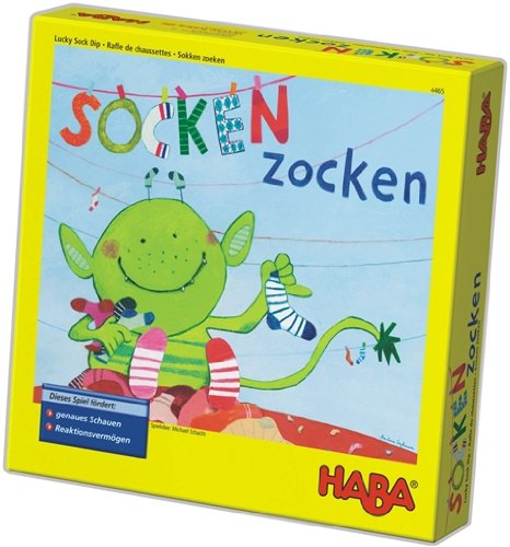 Haba 4465 Spiel SOCKEN ZOCKENDas Sockenmonster war schon wieder im Kleiderschrank! Wer soll in diesem Chaos die passenden Sockenpaare finden? Schnell wühlen die Kinder gleichzeitig im Sockenhaufen. Verflixt, die Socken sehen sich alle so ähnlich! Wer findet die meisten Paare? Ein monsterschnelles Suchspiel für 2-6 Spieler.Achtung! Nicht für Kinder unter 3 Jahren geeignet.Achtung! Kleine Teile. Erstickungsgefahr.Farbabweichungen und Änderung der Designs vorbehaltenPreis pro StückAchtung! Verpackung ist kein Spielzeug. Verpackung vor dem Spielen entfernen. Anschrift des Herstellers aufbewahren.