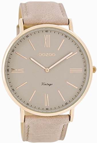 Oozoo Vintage Die Vintage Uhren von Oozoo zeichnen sich durch schlichte Eleganz aus. Mit nur 6.9 mm Bauhöhe und drei Gehäusegrößen von 36 mm, 40 mm oder 44 mm Durchmesser haben die Vintage Uhren von Oozoo eine ideale Größe. Ein klar strukturiertes Ziffernblatt, sowie 4 verschiedene Gehäusefarben und Modelle mit Leder- oder Natoarmband runden diese Modellserie ab. Artikelbeschreibung : - Gehäusedurchmesser : ca. 44 mm (ohne Krone) - Gehäusehöhe : ca. 6.9 mm - Metallgehäuse rosegold beschichtet glanz - Anzeige : Rosegoldene Stunde und Minute zentral - Leuchtmasse auf dem Stunden- und Minutenzeiger - Graues Ziffernblatt mit rosegoldenen römischen Zahlen und Indexen - Spritzwassergeschützt (2 Bar Prüfdruck nach DIN-Norm 8310) - Hochwertiges SII VJ20C Quarzwerk - Pinkgraues Lederband mit Dornschliesse und 2 Bandschlaufen - Bandanstoss : 22 mm - Armumfang : von ca. 17.0 bis 22.0 cm - Gesamtlänge : ca. 24.5 cm - Incl. Oozoo Verpackung und Garantiekarte
