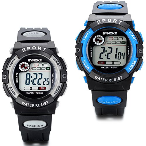 JewelryWe 2pcs Jungen Mädchen Kinder Armbanduhr, Wasserdicht LED Digital Elektronische Sport Uhr Multi-funktion Uhren mit Silikon Armband, 2 Modellen
