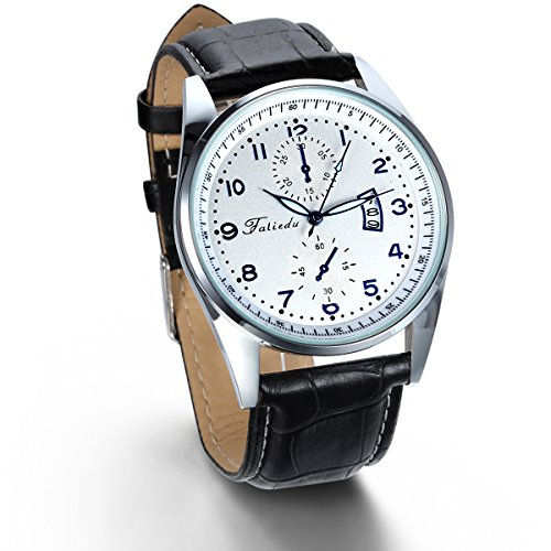 JewelryWe Herren Armbanduhr, Analog Quarz Wasserdicht, Einfach Casual Uhr mit Leder Armband, Schwarz