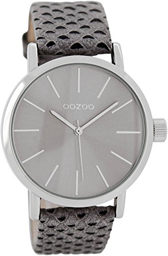 Die Uhrenmarke Oozoo hat sich in den letzten Jahren am Uhrenmarkt stark etabliert. Im Fashion Uhren Sortiment ist diese Marke nicht mehr wegzudenken. Oozoo zeichnet sich durch ein perfektes Preis-/Leistungsverhältnis aus. Hauptmerkmal der Oozoo Uhren sind große XXL Modelle. Mit bis zu 51 mm Durchmesser haben die Oozoo Uhren eine perfekte Größe für Freunde großer Uhren. Die meisten Uhren sind mit Echtlederbändern ausgestattet, man findet aber auch manche Modelle mit Silikon-, Textil- oder Metallbändern. Die bewährten Miyota Uhrwerke bilden das Herz jeder Oozoo Uhr. Artikelbeschreibung : - Gehäusedurchmesser : XL ca. 40 mm (ohne Krone) - Gehäusehöhe : ca. 12 mm - Metallgehäuse silbern beschichtet glanz - Anzeige : silberne Stunde, Minute und Sekunde zentral - Graues Ziffernblatt mit silbernen Indexen - Spritzwassergeschützt (2 Bar Prüfdruck nach DIN-Norm 8310) - Hochwertiges Miyota Quarzwerk - Graues Struktur Lederband mit Dornschliesse und 2 Bandschlaufen - Bandanstoss : 20 mm - Armumfang : von ca. 17.5 bis 22.0 cm - Gesamtlänge : ca. 25.0 cm Lieferumfang : - Oozoo Verpackung - Oozoo Garantiekarte