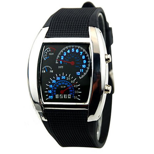 Also ich muss sagen, bei dem Preis habe ich eigentlich wirklich nichts besonderes erwartet. Aber ich wurde eines Besseren belehrt. Nicht nur dass das Metallgehäuse sehr robust ist, sondern auch die LED Ziffern sind sehr gut zu erkennen. Im Dunkeln leuchten sie sehr gut. Das einzige Manko war, dass keinerlei Beschreibung zur Uhr und Datums Einstellung dabei war. Aber mit ein bisschen rumprobieren ging es dann doch recht einfach. Hab mir jetzt gleich noch mal 3 Stück bestellt, denn für das Geld kann die Uhr von mir aus in ein paar Monaten kaputt gehen, und selbst dann wäre es noch völlig ok :) Das Silikonarmband ist zum Glück nicht so wabbelig wie das von manch anderen Uhren. Sondern sehr stabil und verschieben tut sich auch nichts. Ich kann sie nur jedem empfehlen der für die Arbeit oder ähnliches eine günstige Uhr sucht, die auch noch bei den Leuten super ankommt durch das etwas andere Design :)